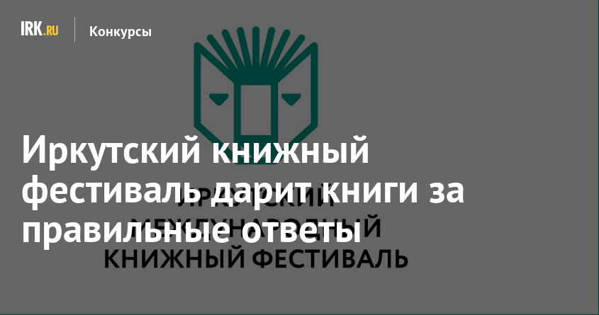 С 19 мая на площади у ДС «Труд» проходит Иркутский международный книжный фестиваль. На нём собрались 50 писателей из России, Германии, Польши, Израиля, свои книги представляют более 70 издательств. Организаторы этого события предлагают читателям IRK.ru Ответить на три вопроса викторины и получить в подарок книгу. Подарок получат три человека, которые первыми пришлют правильные ответы. Итоги подведены! Победителями стали: Мария Горчакова, Любовь Кольцова и Светлана Житова. Вы можете забрать книги в офисе IRK.ru по адресу: Касьянова, 26, офис 5 с 09:00 до 18:00 в будни.