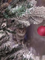 Кот у нас с начала зимы,подобрали на улице, сейчас кот 100%уверен что попал в райской наслаждение,всегда сыт,аж поправился ,любит играть с собакой французским бульдогом,Всегда утром встречает мурлыканьем,чтоб его обняли!Кот очень ласковый,нежный.Поставили елку,она без его внимания не остаётся,любит попинать шары