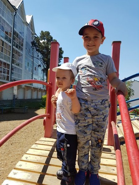 А мы тёплыми деньками обходим все площадки.Мои мальчики всегда довольны долгим прогулкам