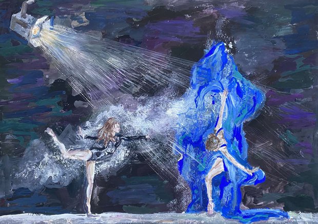 Моя мама и я увлекаемся танцами, это наша семейная традиция. Моя бабушка также в детстве увлекалась танцами. На картине изображены я и мама, наш совместный концерт
