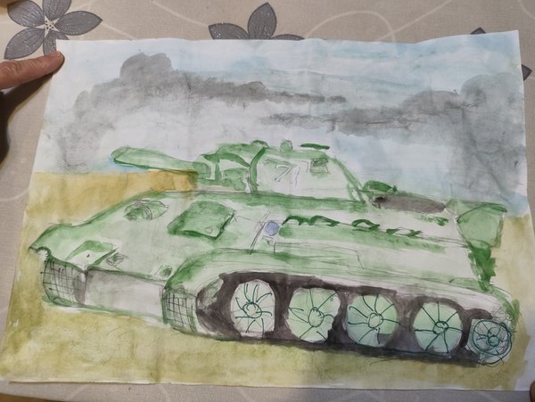 Мирослава рисовала знаменитый танк Т34, но не дорисовала одно колесо и получился танк А20, предшественник Т34.
