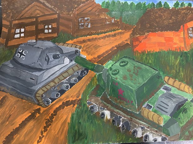 Голосование за лучшие детские рисунки на тему 80-летия Великой Победы 34 Предыдущий Следующий Юрий Викторович Сукоркин, 12 лет Танковый бой. Загрузить комментарии