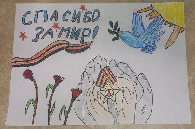 Голосование за лучшие детские рисунки на тему 80-летия Великой Победы 19 Предыдущий Следующий Ярослав Денисович Ивайловский, 7 лет С Днём Победы! Спасибо за мир! Загрузить комментарии