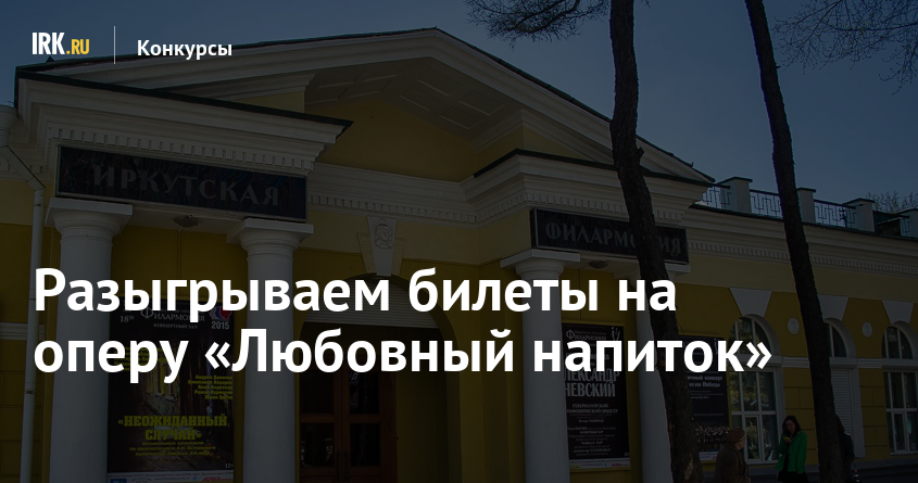 Иркутская областная филармония и сайт IRK.ru разыгрывают два билета на двоих на оперу Гаэтано Доницетти «Любовный напиток». Спектакль состоится в рамках фестиваля «Дыхание Байкала». Оперу исполнят артисты из Италии, Сербии, Иркутска в сопровождении Губернаторского симфонического оркестра под управлением Илмара Лапиньша 27 мая в 18:00 в филармонии.
