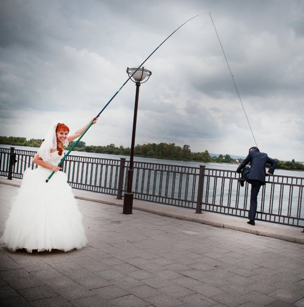 Загрузить комментарииРеально креативная фотка! Особенно хорошо вышло «положение тела» жениха, пытающегося бежать через ограждение)))))