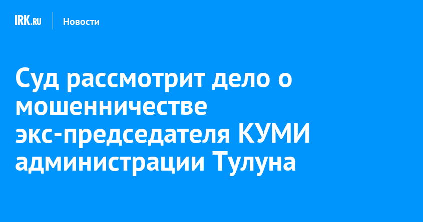 Тулунский городской суд рассмотрит уголовное дело в отношении бывшей председательницы КУМИ администрации. Женщину обвиняют в мошенничестве при выделении жилья, сообщают пресс-службы прокуратуры и СУ СКР по Иркутской области.
