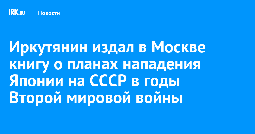 В московском издательстве вышла книга иркутянина Александра Наумова «Кантокуэн для СССР. Несостоявшийся блицкриг Японии». Как прокомментировал автор журналисту IRK.ru, выход книги приурочен к 80-летию Победы над милитаристской Японией и годовщине окончания Второй мировой войны. Издание раскрывает темы, которые замалчиваются до сих пор: планы милитаристской Японии о нападении на СССР и разработку ею бактериологического оружия.