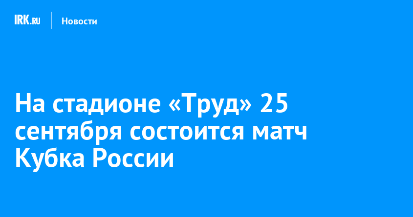 Стадион «Труд» станет площадкой для матча 1/32 финала Кубка России по футболу. Игра состоится 25 сентября 2025 года, встретятся ФК «Иркутск» и команда «Челябинск», сообщается в соцсетях иркутского футбольного клуба.