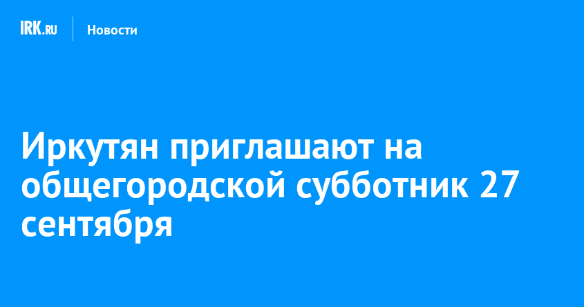 В Иркутске 27 сентября состоится традиционный осенний общегородской субботник. К участию приглашают сотрудников муниципальных учреждений, представителей организаций всех форм собственности, а также активных жителей города. Во время субботника планируют убрать береговые линии рек Ушаковка, Ангара и Иркут, а также привести в порядок лесопарковые зоны и другие территории. Организаторы обеспечат последующий вывоз собранного мусора.
