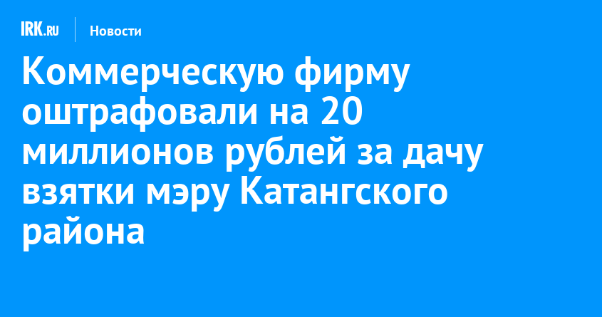 В Иркутской области коммерческую организацию оштрафовали на 20 миллионов рублей за коррупцию. Как сообщает пресс-служба региональной прокуратуры, с мая по октябрь 2023 года сотрудник администрации Катангского района получил от генерального директора фирмы несколько взяток общей суммой 4,7 миллиона рублей. По информации источника, близкого к ситуации, речь идет о мэре Катангского района Сергее Чонском.