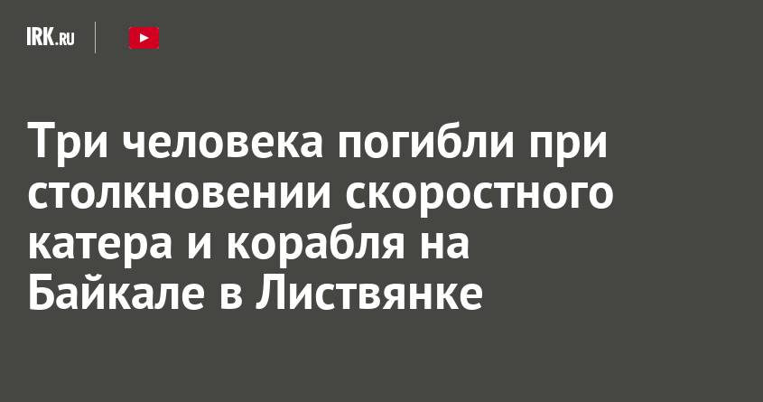 Вечером 11 октября на Байкале в Листвянке столкнулись скоростной катер «Важный» и судно «Ярославец». На борту катера находились пять человек, трое их них погибли. Еще одного пассажира госпитализировали с травмами, сообщают пресс-службы Восточного МСУТ СК России и Восточно-Сибирской транспортной прокуратуры. По данным МЧС, пятого человека ищут.