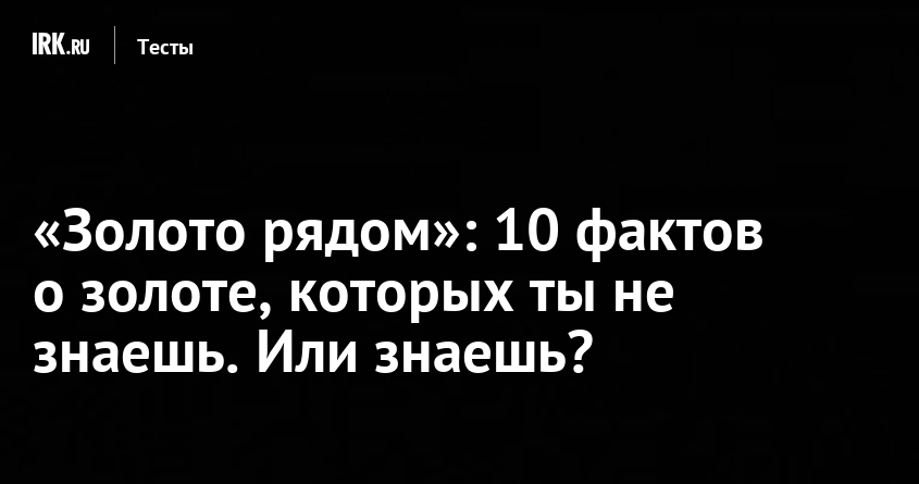 Золото рядом — и мы не шутим. 29 августа вы можете попасть на специальную экскурсию, узнать удивительные факты о драгоценном металле и получить классные подарки от золотодобывающей компании «Полюс»! Пройдите наш тест, ответьте правильно на 10 вопросов, сделайте скриншот и отправляйте на почту news@irk.ru. Победителями станут первые семь счастливчиков. Поехали!