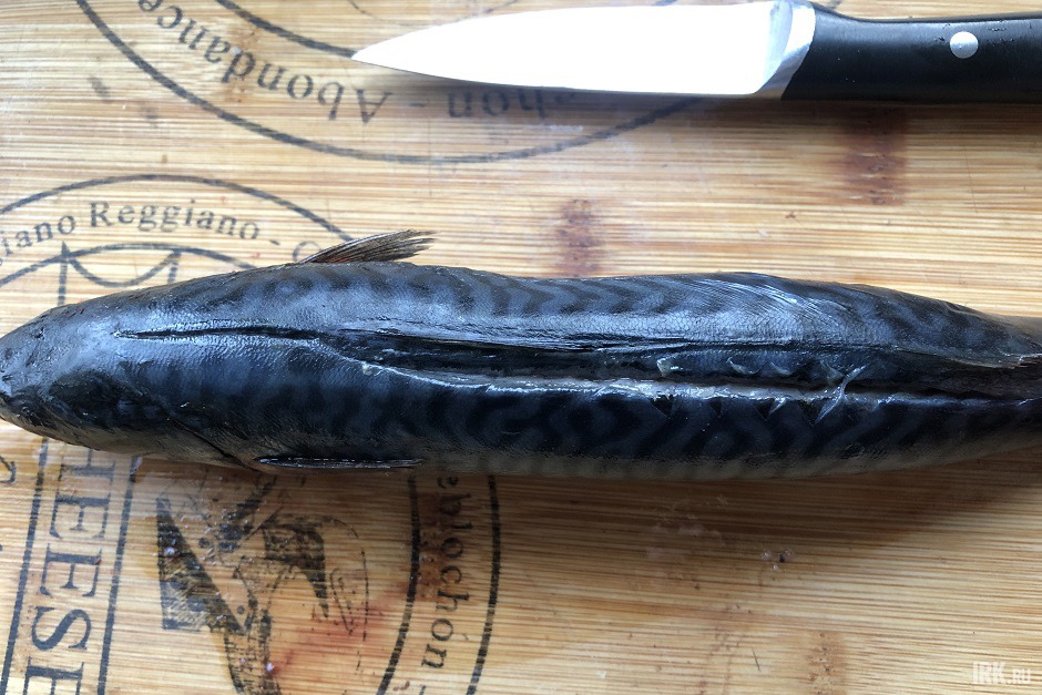 Подготовим рыбу. Вдоль хребта по спине сделаем ножом надрез. Отделим от мяса и по краям (возле головы и хвоста) отрежем ножницами хребет. Извлечем вместе с костями и внутренностями. Промоем, уберем лишнюю жидкость бумажным полотенцем.