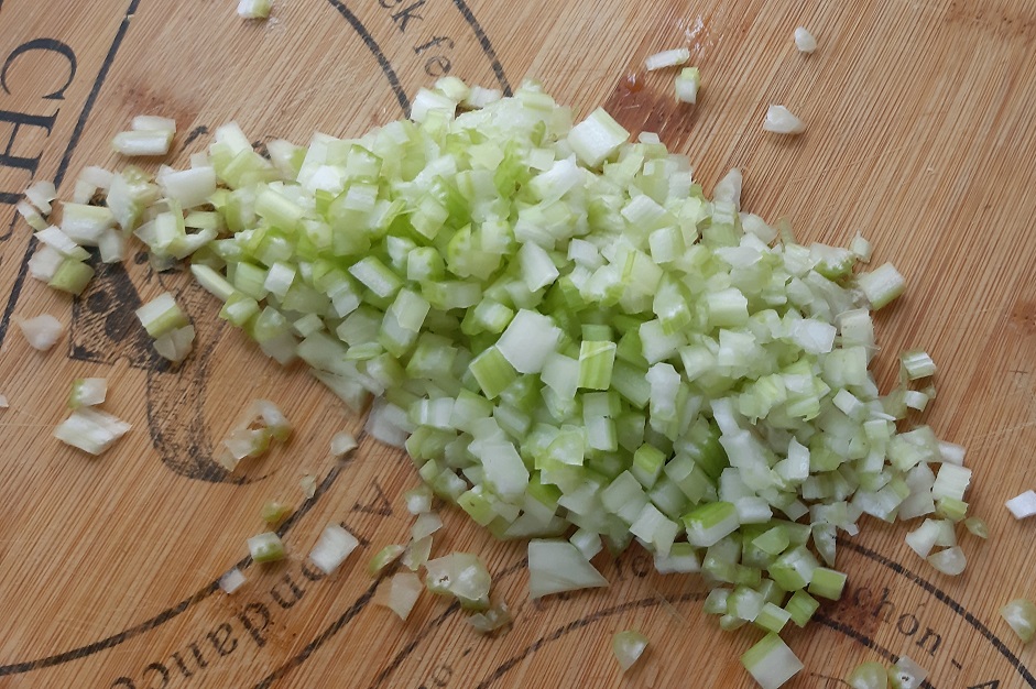 Подготовим ингредиенты для салата. Консервированный тунец разомнем вилкой, сольем жидкость. Сельдерей и яблоко нарежем мелко. Морковь – на терке, лук – колечками. Соединим все вместе, сбрызнем лимонным соком.