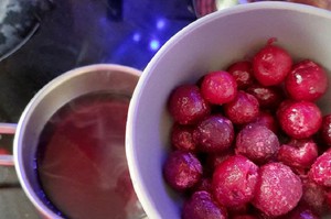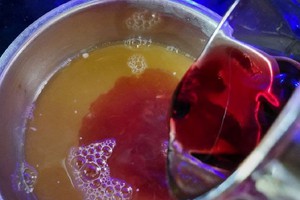 Варим карамель. Соединяем сок апельсина и мандаринов, вино, все соусы и мёд. Томим на среднем огне 10-15 минут. Если вам покажется, что карамель вовсе не карамель, а почти вода – не унывать. В духовке при высокой температуре запечется и получится как надо.