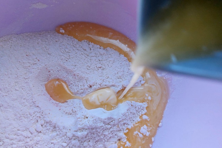 В большую миску просеем 200 граммов муки, сделаем в центре углубление. Добавим соль, растопленное сливочное масло и теплую воду — столько, чтобы получилось эластичное тесто. Скатаем тесто в шар, завернем в плёнку и уберем в холодильник на 40 минут.