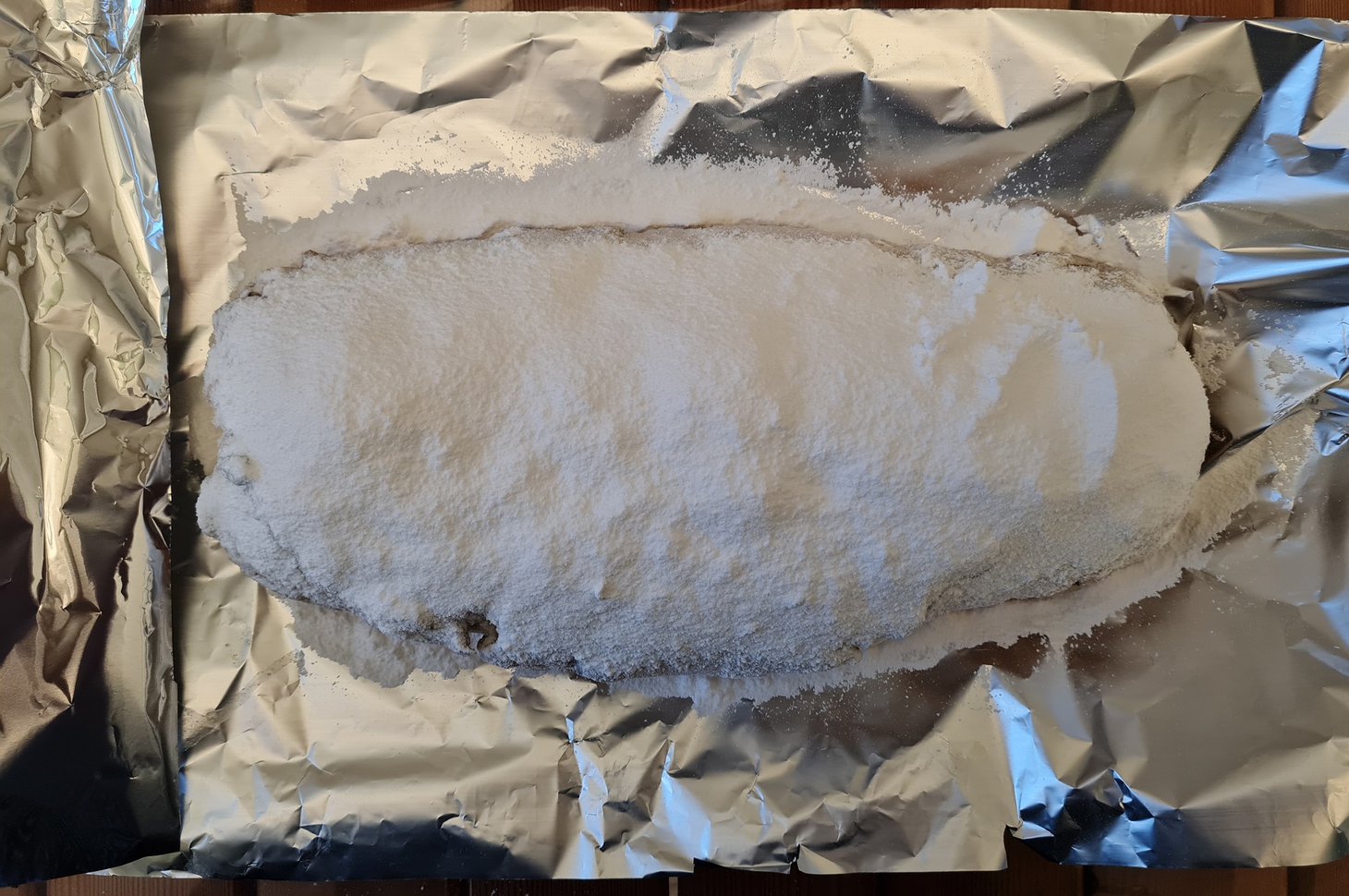 Можно всё это делать, пока штоллены на противне, а можно переложить сразу на большие листы фольги, каждый на отдельный. Я сразу перекладываю, но у меня есть опыт. Горячие штоллены легко сломать.