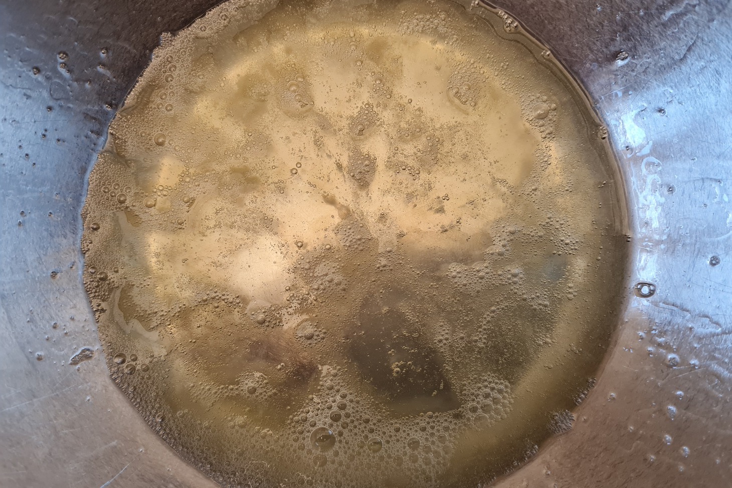 Как только масло готово, сразу перелейте его в другую посуду, чтобы завершить процесс и отделить темно-коричневый осадок, который образуется, когда жарим масло. Сначала я процеживаю через металлическое сито и даю остыть до тёплого состояния, а потом ещё раз процеживаю через марлю или бинтик.