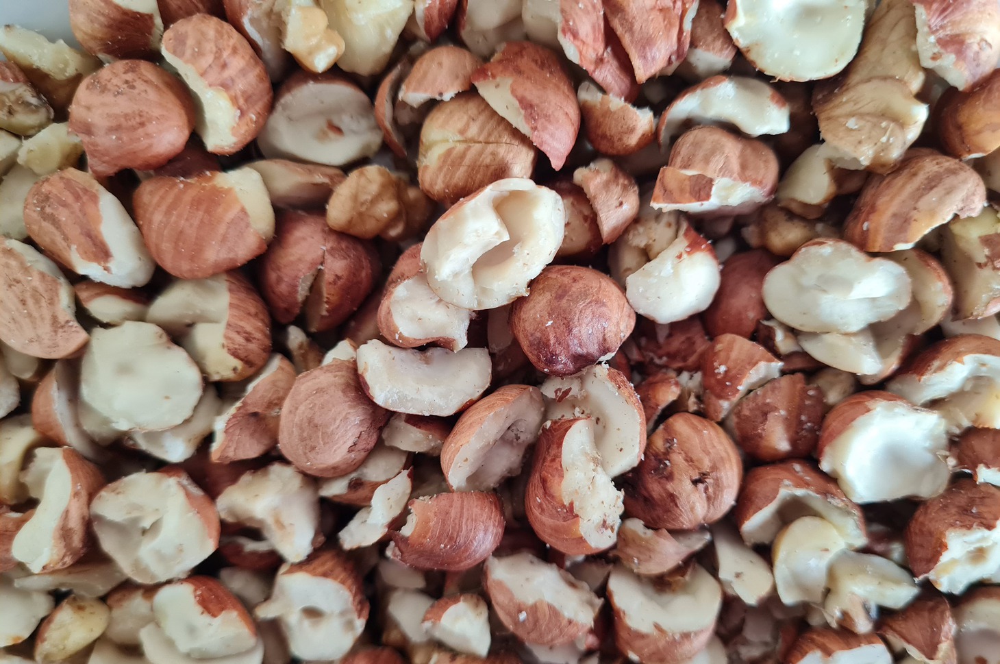 Фундук я не очищаю. Толку его в ступке частями, чтобы ядра раскололись пополам. Кусочки орехов не должны быть мелкими.