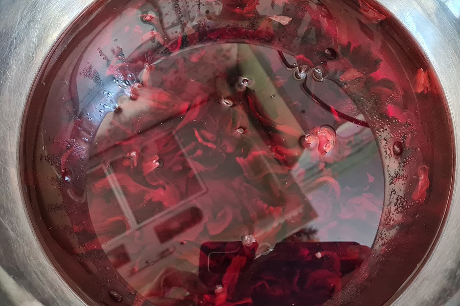 На следующий день заварите крепкий чай каркадэ. Для этого лепестки суданской розы залейте литром кипятка, накройте крышкой и настаивайте не менее 10 минут.