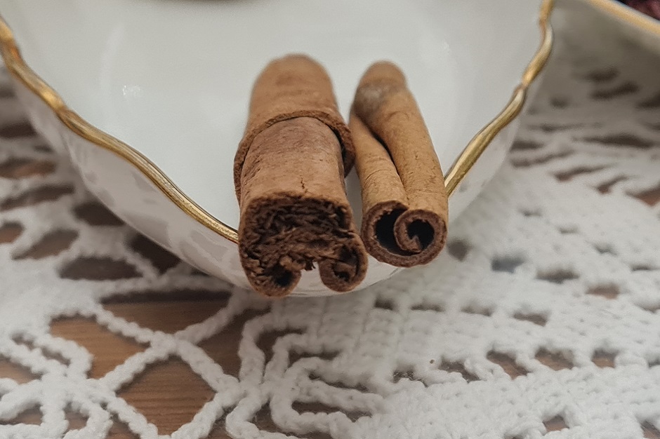 Корицу лучше использовать натуральную. На фотографии вы видите визуальное отличие натуральной корицы (слева) от кассии (справа).