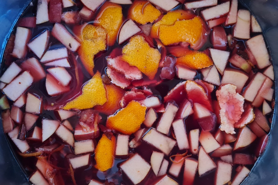 Всё перемешайте, плотно закройте посуду с фруктами и специями и уберите в холодильник на всю ночь.